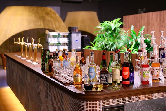右:TAOYA日光霧降自慢のアルコールカウンター。赤白のワインはもちろん、栃木県の地酒なども豊富に揃い、和洋中の料理に合わせてアルコールを変えて楽しめるのも、オールインクルーシブならでは。