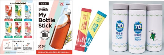昭島市が作成するオリジナル水筒と一緒に《「ブレンディ(R)」マイボトルスティック》シリーズから、〈すっきり香るアセロラV.C〉〈すっきり香るレモンV.C〉を市内の全小中学生約8,600人へ配布します。