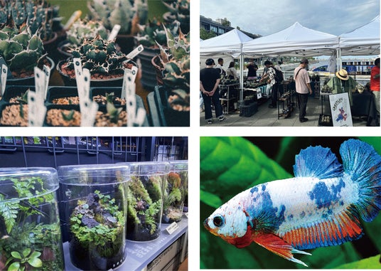 横浜ハンマーヘッドエリアでは、流行のアガベや多肉植物、アクアリウムのグリーンマーケットを展開します。この機会に是非流行の珍奇植物を手に取って体験してみてください。