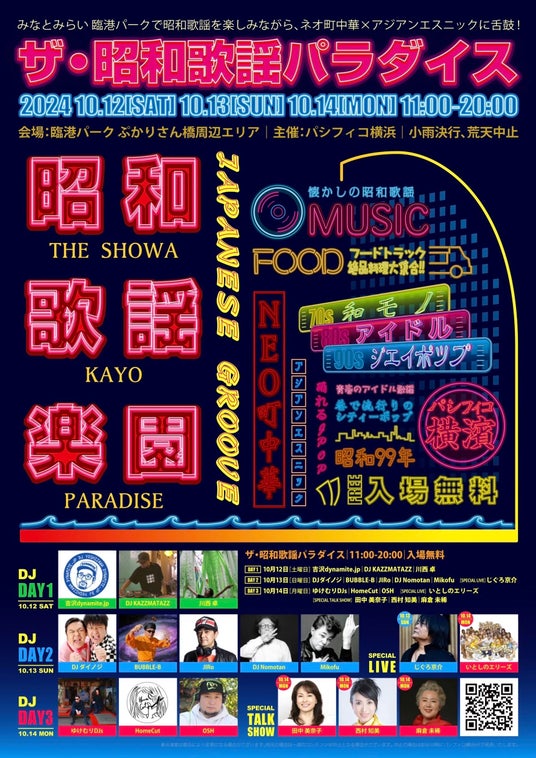 [周辺イベント]臨港パークでは流行の昭和歌謡×ネオ町中華を楽しめるイベント開催