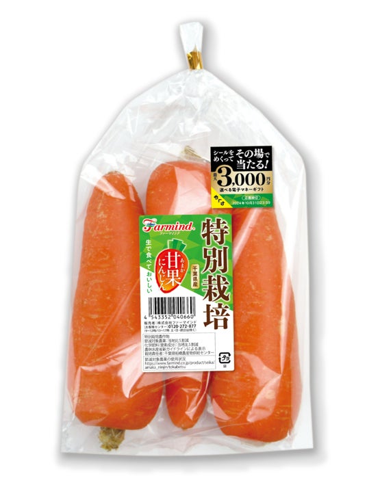 ご購入のたびに当たるチャンスがありますので、ファーマインドの甘果にんじんを楽しみながら、是非ご応募ください。