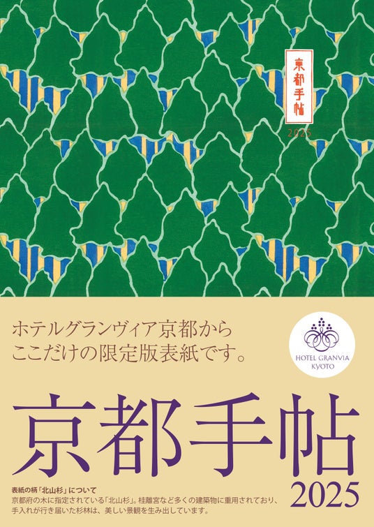 2025年版のホテルグランヴィア京都限定表紙は、“北山杉柄”のデザインです。京都府の木として選ばれている「北山杉」。北山杉はまっすぐ天に向かって伸びます。北山杉のように、天に向かって伸びる、そんな一年になるようにと思いを込めて選びました。昨年の京都手帖は700冊が完売する人気ぶりで、2025年版は1,000冊を販売します。