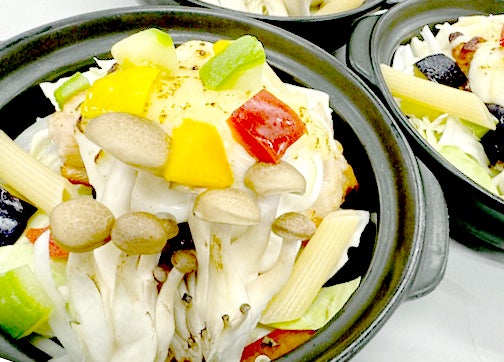◆きのこと若鶏ローストと秋茄子のグラタン仕立て