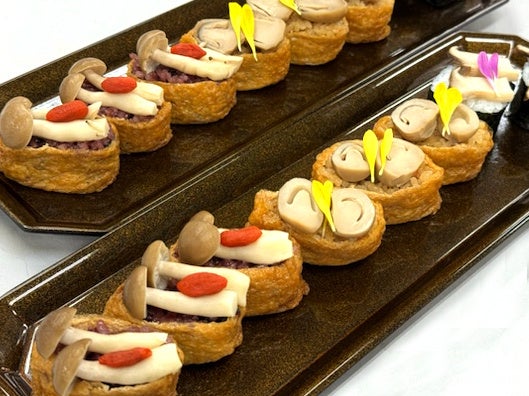 秋の恵みであるきのこを使って、昆布で丁寧に〆た特製稲荷寿司。