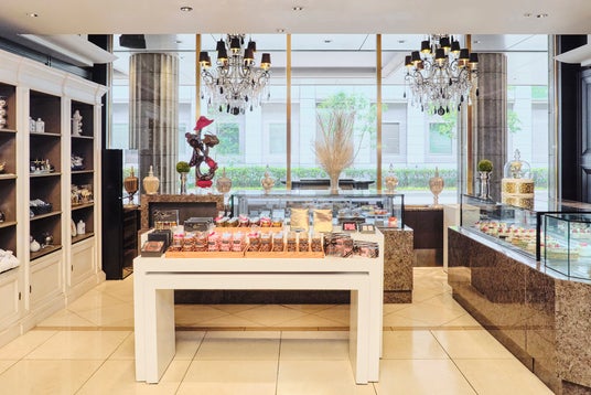 1F ロビーフロアのザ・ショップ N.Y.ラウンジブティックでは、専属のパティシエが手掛けるスイーツや焼き菓子、ホテルオリジナルのタオル、アロマエッセンスなどのお土産品を販売しております。