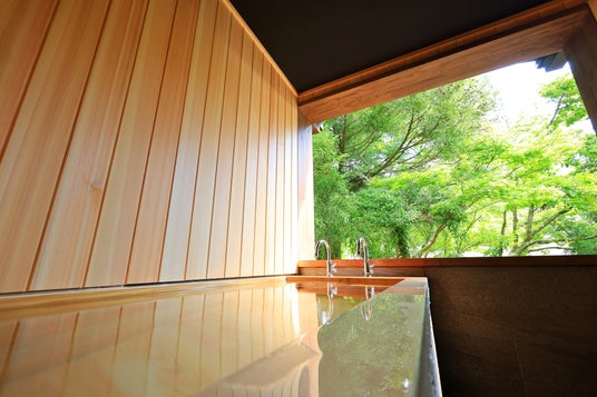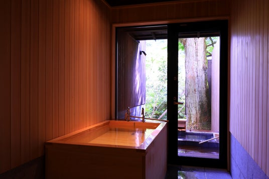 明治の英傑や数々の文人墨客が訪れた歴史ある松坂屋本店の中でも、「離れ」は皇室にゆかり深い客室。廊下からリニューアルを行うことで、名の通り他の棟から離れた、より特別感ある造りと生まれ変わりました。露天風呂に加え内風呂も設置、内風呂ではお好みで薬湯をお愉しみいただけます。