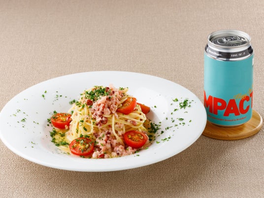 *濃厚で旨味の強いパスタには、印象的な香りのビールを合わせて。