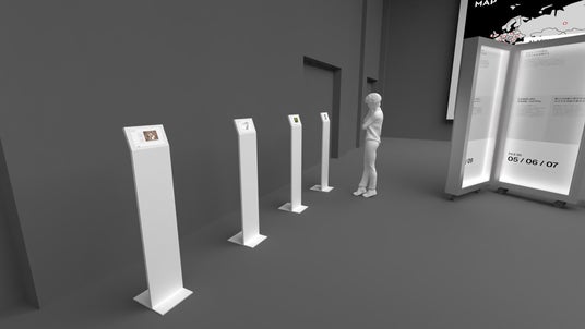 カクテルを楽しみながら、「iichiko design」を見ることができる、デジタルを活用した体験をご用意。センサー付きの平面モニターをテーブルにした、インタラクティブテーブルを設置しております。インタラクティブテーブルに置いてある各商品の円型のコースターをモニターに置くと、酒質チャートやおすすめの飲み方、関連するクリエイティブが浮かび上がり、お酒を楽しみながら「いいちこ」を知ることができる体験型展示です。