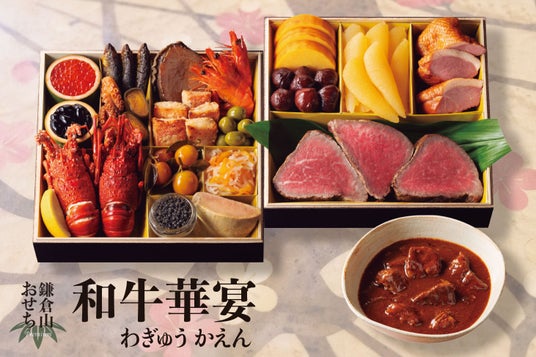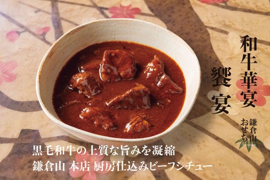 黒毛和牛の旨みを凝縮した厨房仕込みビーフシチューをセットにした鎌倉山ならではの独創的おせち。