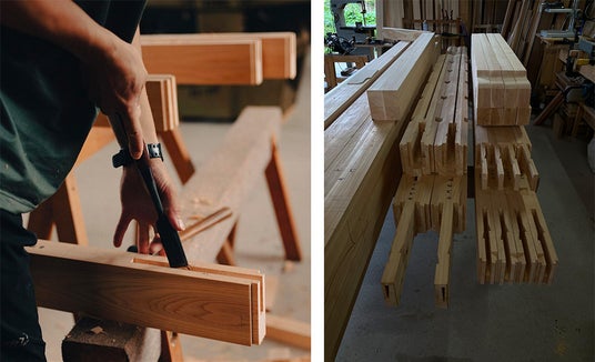 「こども建前」と題して、大工さんと一緒に、金具を使わずひとつのすべり台を作り上げるワークショップです。
