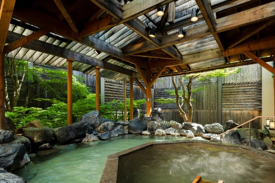 名湯 鹿の湯を引き込む3つの大浴場と、当フロア宿泊者限定サービスの3つの貸切り湯で、温泉宿の醍醐味 湯巡りを体験。アメニティは自然派コスメOSAJI、ReFa製の最新シャワーとドライヤーも完備。
