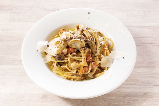 ※スパゲットーニ 太さは2.1mmと少し太いスパゲッティです。弾力性が高く食べごたえがあり、今回のきのこと厚切りベーコンの美味しさを独特の食感と共に引き立てます。