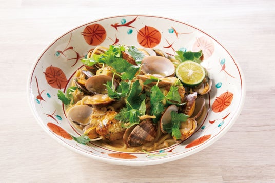 日本酒、生姜、醤油を使用した和風仕立てのボンゴレ ビアンコ。