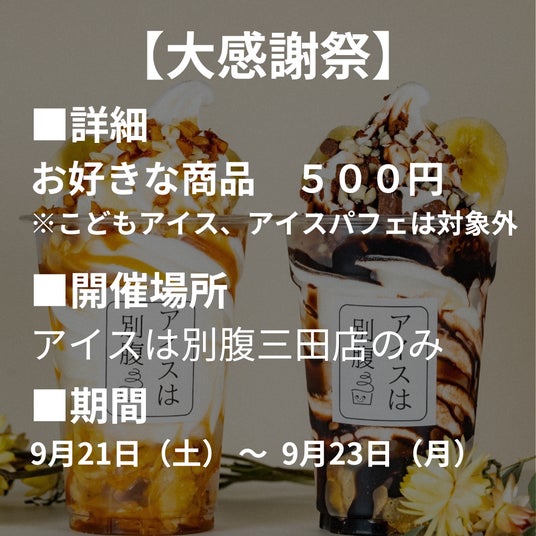 この機会にぜひともお得にアイスは別腹のアイスをお楽しみ下さい。