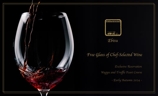 ご予約限定の当コースでは、シェフの創意が詰まった特別な和牛料理にぴったりのワインを一杯、無料でお楽しみいただけます。黒毛和牛とトリュフの深い味わいを引き立てるワインが、秋の趣を感じさせる優雅なひとときをさらに特別なものに彩ります。
