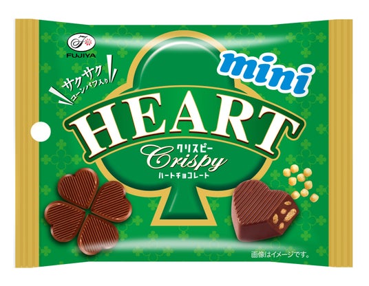 不二家のロングセラー「ハートチョコレート」より新商品が登場します。サクサクとした軽い食感のコーンパフをまろやかな味わいのミルクチョコでコーティングしたハート形チョコレートです。通常ハートが描かれているところに四つ葉のクローバーが描かれたラッキーデザインのチョコを見つけたらハッピーな一日に。可愛いハート形のチョコレートは配り菓子やプチギフトにもぴったりです。