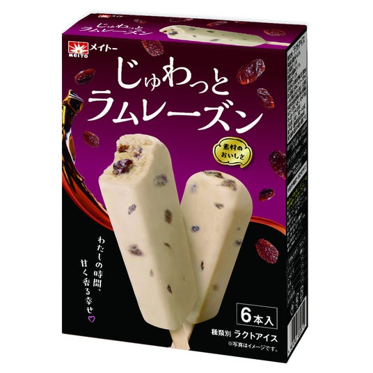ラム酒が染み込んだ刻みレーズンを混ぜ込んだラムレーズンアイスです。 大きく刻まれたラムレーズンは、断面からじゅわっとラム酒の味わいが広がります。