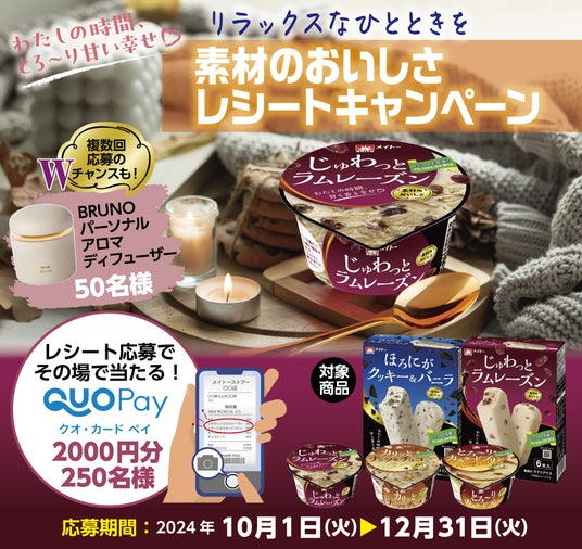 また、2000円分のQUOカードPayや、BRUNOパーソナルアロマディフューザーが抽選で当たる「素材の美味しさレシートキャンペーン」を10月1日(火)~12月31日(火)に実施致します。