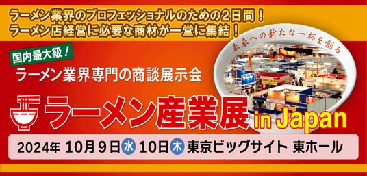 FOOD STYLE Japan 実行委員会(所在:東京都港区、運営:株式会社イノベント)は、10月9日(水)・10日(木)の2日間、東京ビッグサイト 東2・3ホールにて、ラーメン産業展 in Japan を開催いたします。