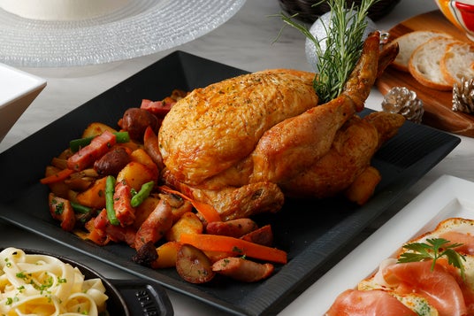 クリスマスに欠かせないローストチキンとホテルパティシエ特製のクリスマスショートケーキが含まれ、お子様から大人まで楽しめる、ご自宅で本格的なクリスマスパーティーにおすすめのセット2種類を販売いたします。ご予算や様々なシーンに合わせてお選びいただけるよう、2名様用と4名様用をご用意いたしました。テイクアウトをはじめ、ホテルから2km圏内のデリバリーも承ります。