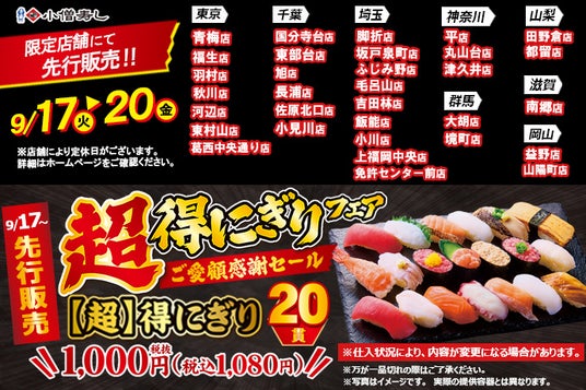 【超】得にぎり 20貫 1,000円(税込1,080円)