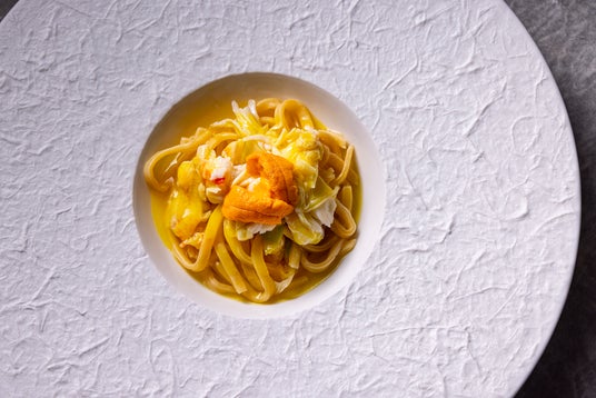 タラバガニ・骨髄リングイネ・下仁田葱・雲丹&ターメリックブロス