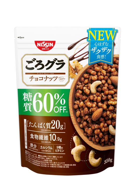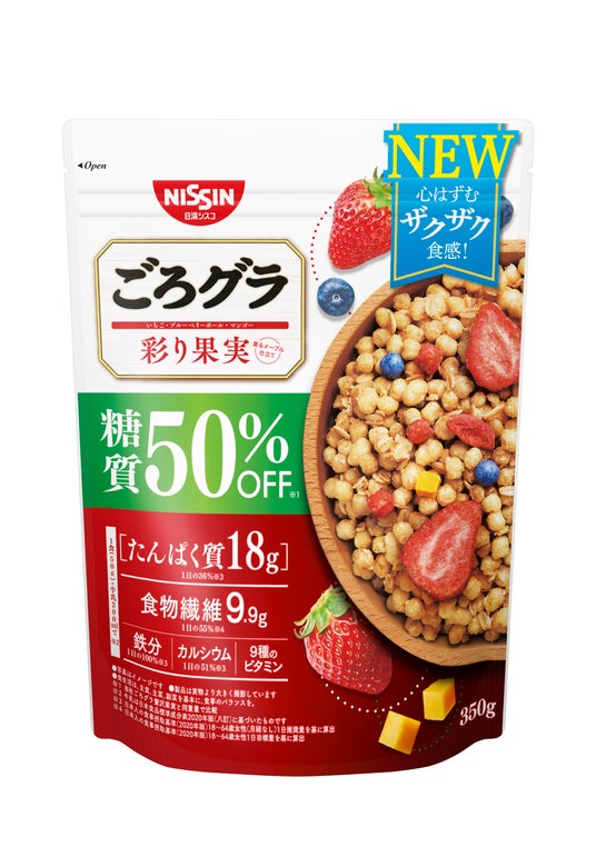 日清シスコ株式会社 (社長:浅井 雅司) は、「ごろグラ 糖質50%オフ 彩り果実 350g」「ごろグラ 糖質60%オフ チョコナッツ 350g」「ごろグラ 糖質60%オフ まるごと大豆 350g」を2024年9月30日(月)に全国でリニューアル発売します。