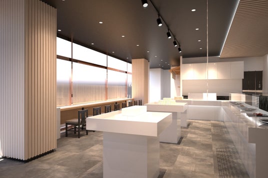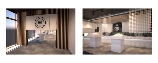 伝統と革新を表現するブラック&ホワイトのブランドカラーを店舗デザインにも反映いたしました。新たなロゴアイコンからデザインパターンを拡張し、今後、商品関連グッズや店舗内アイテムなどへ応用していきます。