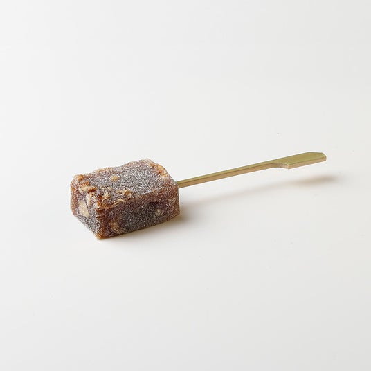 厳選された餅米と胡桃(くるみ)を用いた風味豊かな焼き餅菓子です。炙りの技法により砂糖と醤油の香ばしさが引き立てられ、焼き餅の柔らかさに胡桃がアクセントとなり「ゆべし」の新しい楽しみ方をご堪能いただけます。