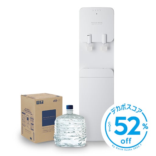 「デカボスコア」とは、生活者一人ひとりのアクションで脱炭素社会を推進する「Earth hacks」のサービスとして、商品やサービスのCO2排出削減率を可視化したマークです。お客さまが商品やサービスを選ぶ際の、環境価値における新しい選択基準として提供されています。プレミアムウォーター12Lボトルの天然水を1本消費した場合、500ml ペットボトル24本(計12L)のミネラルウォーターを消費した時に比べて、52%のCO2排出量を削減できることが示されました。(この製品1つあたりの製造工程におけるCO2削減量)