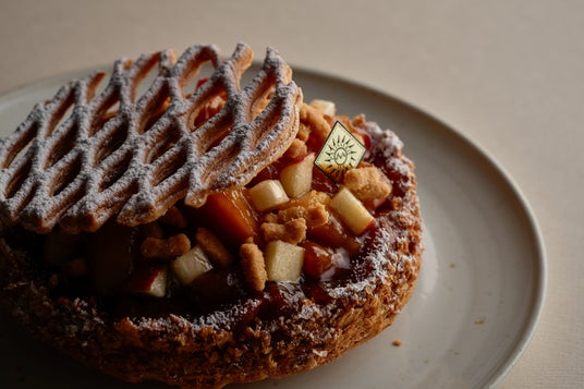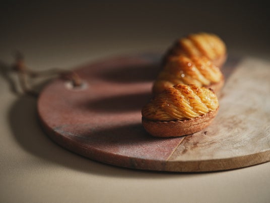 マスカルポーネのクリームと林檎のコンフィチュールをふわふわとした軽やかな生地でサンドしました。まろやかでクリーミーなマスカルポーネと甘酸っぱい林檎の味わいが見事に調和したブッセ。