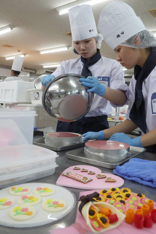 ケーキを制作する高校生ら
