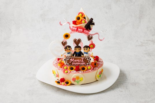 高校生パティシエ日本一の栄光をつかんだ「arc-en-ciel」は、母の日をテーマにしたケーキ「chouette(シュエット)」を制作。母から伝わる愛の温かさをイチゴとオレンジを用いて表現し、3人の母が好きなヒマワリ、ガーベラ、チューリップの花束をお菓子で作りケーキを彩りました。