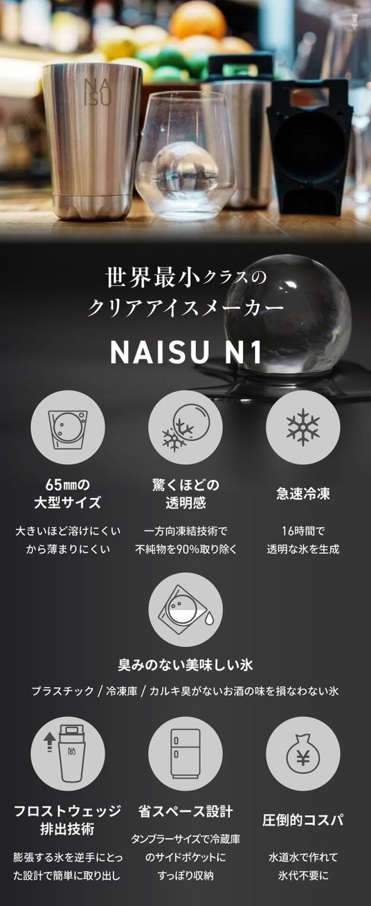 ぜひこの機会に、世界最小クラスクリアアイスメーカーNAISU N1を手に取ってくださいませ。