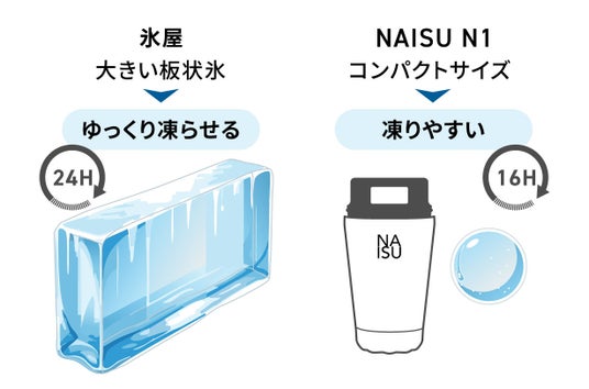 NAISU N1は真空構造なので冷気を逃がさず最短で氷を生成していくからこそ16時間という短時間で完成できるんです。