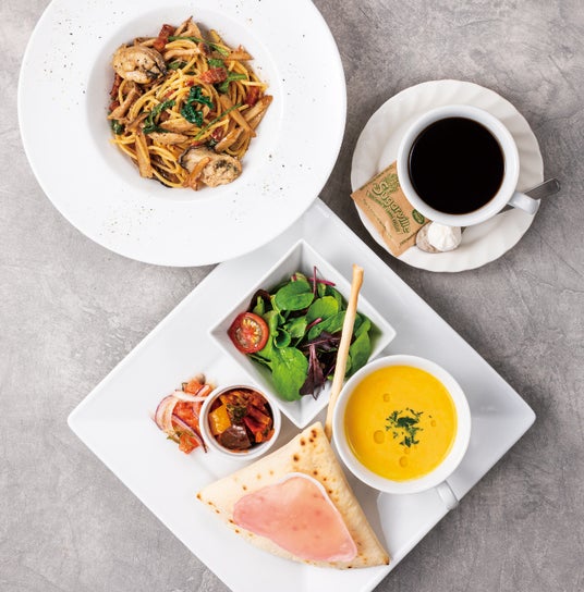 食欲の秋らしさ溢れる、海の幸と山の幸を取り入れたパスタ「牡蠣ときのこのマーレ エ モンテ 」は、広島県産牡蠣とパンチェッタにきのこ、それぞれの素材の旨みが一体となったソースで仕上げ、香り豊かなごぼうと春菊がアクセントになる一皿です。