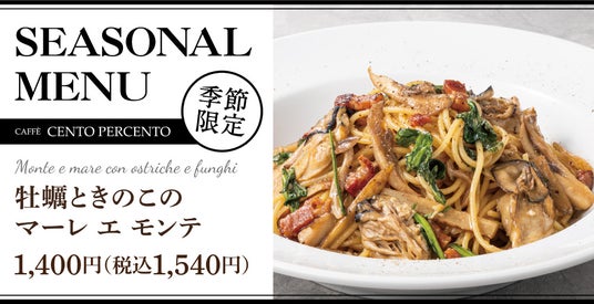 アークランドサービスホールディングス株式会社の子会社で、行列ができる進化系たらこスパゲティ専門店「東京たらこスパゲティ」などを展開するフィルドテーブル株式会社(本社:東京都千代田区/代表:中島 宗則)は、ホームセンターを中心に出店し本格イタリアンで日常に上質感を味わうカジュアルレストラン「チェントペルチェント」にて、季節限定メニュー「牡蠣ときのこのマーレ エ モンテ」と「モンテビアンコ」を2024年9月18日(水)より販売いたします。