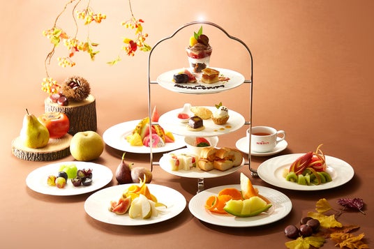 カットフルーツ食べ放題とアフタヌーンティーセット(お一人様おひとつ)を120分楽しめる「タカノフルーツティアラ」。洋梨や和梨、柿、いちじくなど、秋の味覚のフルーツが食べ放題として登場します。※入荷状況によりご提供できない場合がございます。