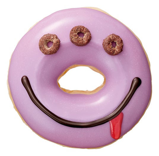 『ムラサキイモ モンスター』 は、チョコシリアル3個でできた目がポイントで、口元からしたたる甘酸っぱいストロベリーナパージュの血がドキドキさせるコワ可愛いモンスタードーナツです。オリジナル・グレーズド(R)にムラサキイモ風味をコーティングした味わいは、見た目によらずやさしい甘さで、ほっこりした気分を楽しめます。