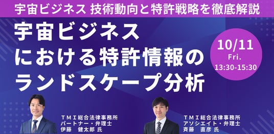 JPI(日本計画研究所)は、TMI総合法律事務所 パートナー・弁理士 伊藤 健太郎 氏、アソシエイト・弁理士 斉藤 直彦 氏を招聘し、宇宙ビジネスにおける最新の技術動向と知財戦略について詳説いただくセミナーを開催します。