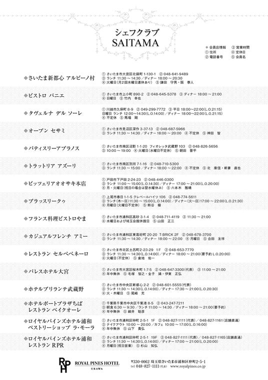 ※シェフクラブSAITAMA会員店でもご予約いただけます