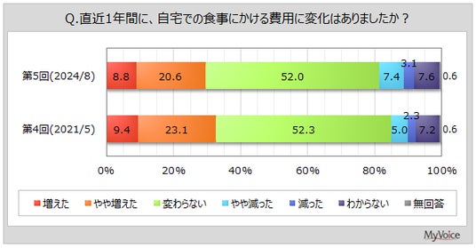 マイボイスコム株式会社(東京都千代田区、代表取締役社長:高井和久)は、5回目となる『自宅での食事スタイル』に関するインターネット調査を2024年8月1日~7日に実施しました。
