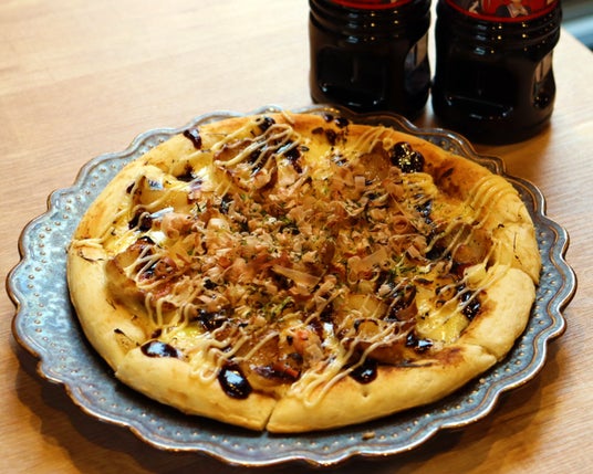 豚玉をイメージしたお好み焼き風ピザです。