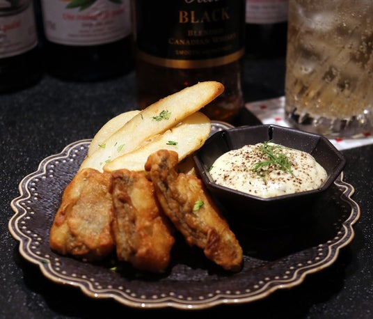 CUE LAMPの1番人気メニューであるフィッシュ&チップスのタルタルソースをどろソース仕様にアレンジ!揚げ物との相性もバッチリです。