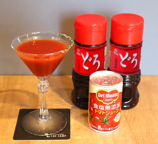 ウォッカベースに和風ダシとトマトジュースを合わせ、どろソースをアクセントとして加えた、冷製スープのようなカクテルです。