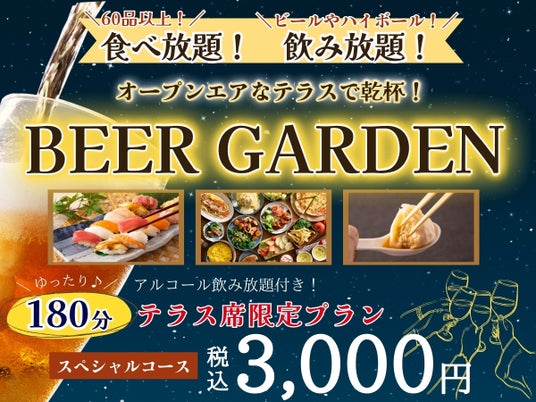 ぜひ今年の秋の夜長は、テラスビアガーデンで食べ放題とともにお楽しみください!
