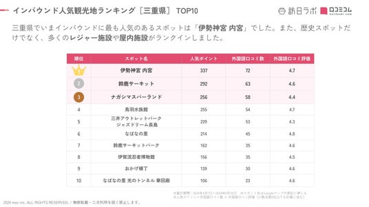 インバウンド人気観光ランキング[三重県編] TOP10