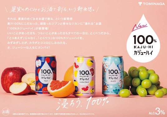 果汁100%の贅沢な美味しさ、心地よく浸れるアルコール度数。「自分の時間を自分らしく楽しみたい」という声に応えて誕生したチューハイです。全国(一部エリアを除く)のスーパーマーケットやコンビニエンスストアでは、特に女性の方を中心にご好評をいただいており、2024年9月19日で「シリーズ発売1周年」を迎えます。