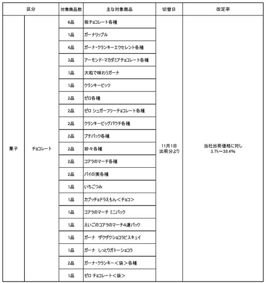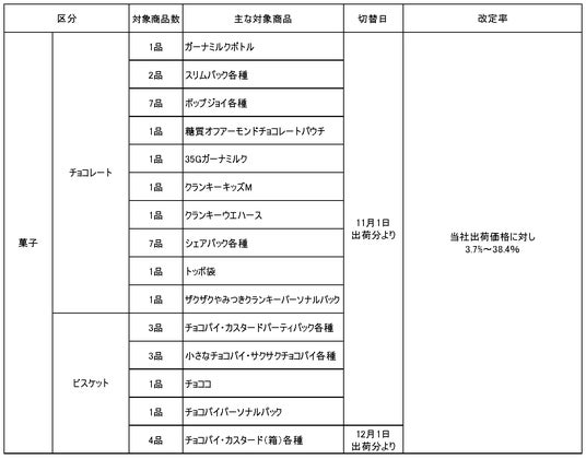 菓子価格改定商品