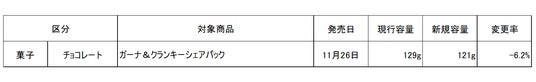 菓子価格改定・内容量変更商品(1品)